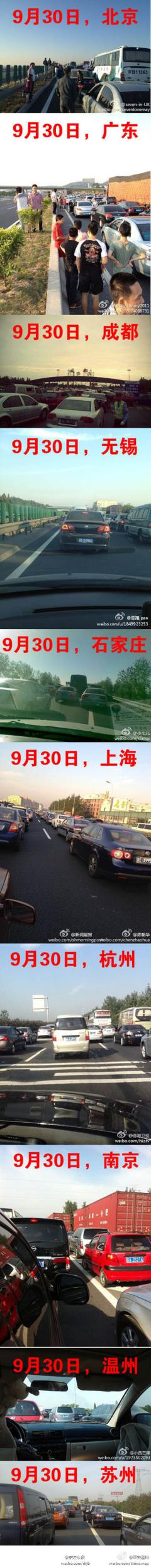 9点35分,@平安温州发微博向全国网友征集“堵”照,短短几分钟内,全国高速“堵”照迅速汇拢,从照片上看那真是惨不忍“堵”。